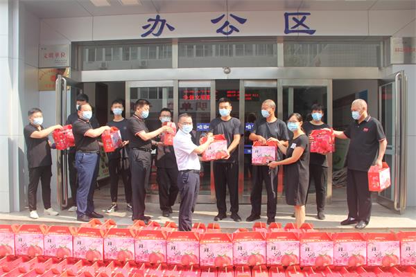8月9日、10日北關(guān)區(qū)總工會(huì)副主席薛梅、保障部部長司尚雯來到公司,送來抗洪防疫慰問品鮮桃500多箱,向堅(jiān)守崗位、奮戰(zhàn)一線的保安隊(duì)員進(jìn)行慰問,提醒大家做好防控工作的同時(shí)一定要做好自身防護(hù)。