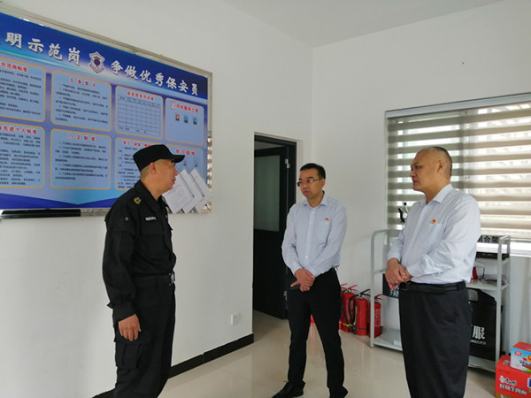 上午8時(shí)許,公司領(lǐng)導(dǎo)班子首先來到公司聯(lián)網(wǎng)報(bào)警指揮中心,看望了值班的同志,詢問了聯(lián)網(wǎng)報(bào)警系統(tǒng)運(yùn)行情況。隨后,分為三組,分別到特保大隊(duì)中國文字博物館、殷墟博物苑,人防殷都檢察院、聯(lián)通公司,守押一大隊(duì)、五大隊(duì)駐地,鼎誠物業(yè)吉祥家園,技防國藥控股,藍(lán)盾駕校、鼎信公司,對堅(jiān)守在工作崗位的員工進(jìn)行了慰問。每到一處,公司領(lǐng)導(dǎo)都會詳細(xì)詢問員工生活和工作情況。王高峰在聯(lián)通公司崗點(diǎn),詢問了文明標(biāo)準(zhǔn)崗創(chuàng)建情況,鼓勵(lì)他們積極創(chuàng)優(yōu)爭先;在守押一大隊(duì)駐地,聽取了石培瑞到任后的工作進(jìn)展、車況和運(yùn)行、隊(duì)員作息情況,瀏覽了隊(duì)務(wù)公示欄,還饒有興致地參觀了院內(nèi)的小菜園,叮囑一定要把隊(duì)員生活搞好,還可以開展豐富多彩的文體活動,增強(qiáng)隊(duì)伍的凝聚力和戰(zhàn)斗力。在吉祥家園,王高峰一行認(rèn)真聽取了項(xiàng)目負(fù)責(zé)人的匯報(bào),對鼎誠物業(yè)的工作提出了許多指導(dǎo)性意見。