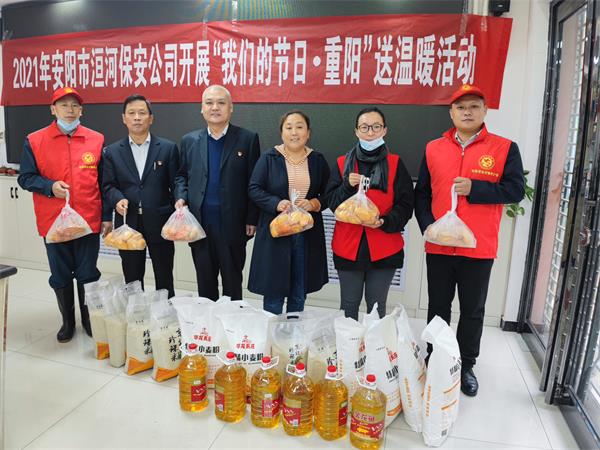 九九重陽節(jié) 濃濃敬老情。10月14日上午,公司黨委委員、副總經(jīng)理魏東冒雨帶領(lǐng)志愿者們前往盤庚中社區(qū),開展“我們的節(jié)日·重陽”送溫暖活動,為老人們帶去了米、面、油和蛋糕等慰問品,送上了對老人的關(guān)懷之情。