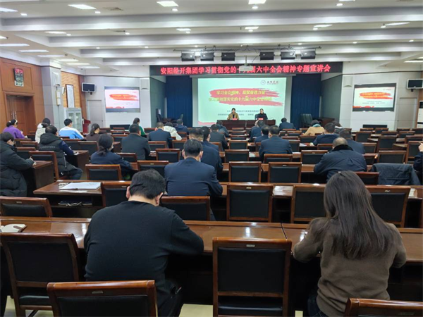 12月14日上午,安陽經(jīng)開集團(tuán)召開學(xué)習(xí)貫徹黨的十九屆六中全會(huì)精神專題宣講會(huì),深入學(xué)習(xí)貫徹習(xí)近平總書記在黨的十九屆六中全會(huì)上的重要講話精神和《中共中央關(guān)于黨的百年奮斗重大成就和歷史經(jīng)驗(yàn)的決議》,特邀請中共安陽市委黨史學(xué)習(xí)教育宣講團(tuán)成員、安陽學(xué)院黨委委員、宣傳部部長姚林茹進(jìn)行授課,會(huì)議由經(jīng)開集團(tuán)黨委委員、副總經(jīng)理劉志霞主持。洹河保安公司黨委副書記張錫軍帶隊(duì),組織公司15名黨員干部參加學(xué)習(xí)。