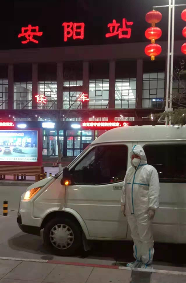 按照上級工作安排,要求學(xué)校安排車輛,用于接送醫(yī)護(hù)人員到社區(qū)、村委隔離點(diǎn)進(jìn)行核酸檢測,從火車站接中高風(fēng)險區(qū)返安人員到集中隔離點(diǎn)隔離,接送解除隔離的群眾回家。任務(wù)不僅風(fēng)險大,而且非常繁重。他向上級保證堅(jiān)決完成任務(wù)。為確保任務(wù)完成安全、有序,他安排楊福財(cái)、許慶軍一同完成。自1月10日以來,他們不分晝夜已先后出車20余次。21日,一場大雪降臨安陽,濕滑的路面給他們的工作帶來極大難度,車輛在路面上打著滑,時不時向路邊滑去,為完成任務(wù),周衛(wèi)國、楊福財(cái)保持高度警惕,楊福財(cái)手握方向盤,小心翼翼準(zhǔn)時將車開到火車站、隔離區(qū),把中高風(fēng)險區(qū)返安人員送到集中隔離點(diǎn)隔離,又將解除隔離的群眾接送到家中。