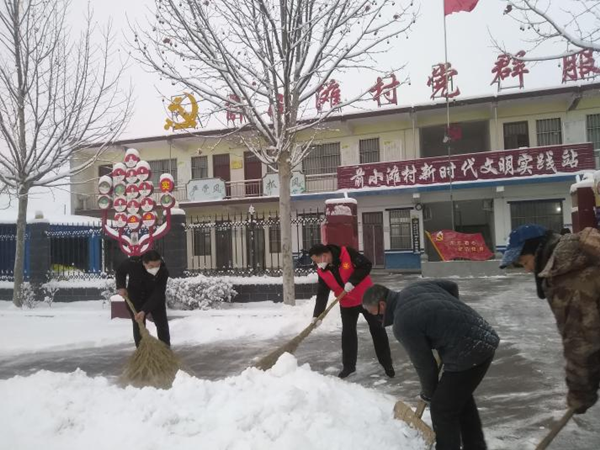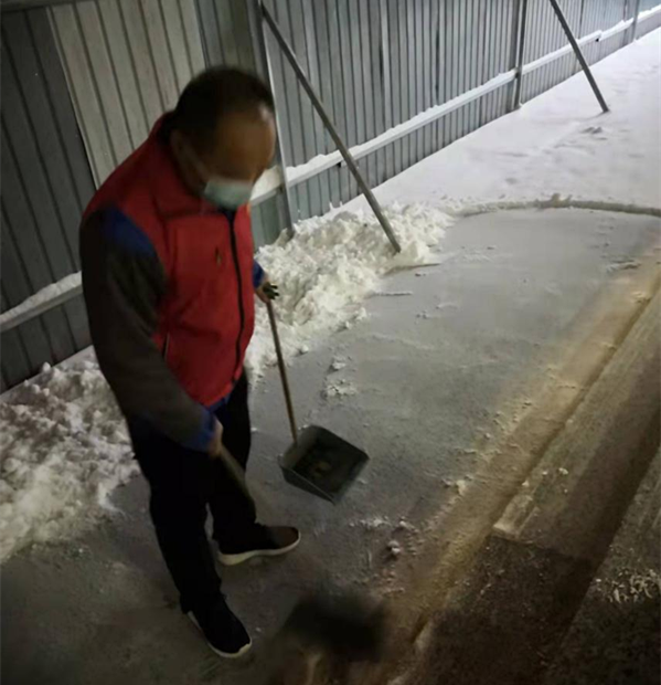 湯陰疫情嚴(yán)重,共產(chǎn)黨員常連群、積極分子許慶軍在20日晚11點(diǎn)接到公司支援湯陰抗疫通知后,二話不說,拎起行囊,加入到支援湯陰疫情防控隊(duì)伍中去,他們和公司張海林,劉慶剛兩位同志下沉到湯陰縣伏道鄉(xiāng)前小灘村幫助抗疫,攜助村委會干部組織核酸檢測,維持村民做到足不出戶,街門鎖閉,住家隔離。22日,一場大雪,席卷大地,他們一大早掃起雪來開始一天的工作,表示疫情不退,絕不收兵。