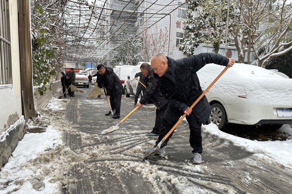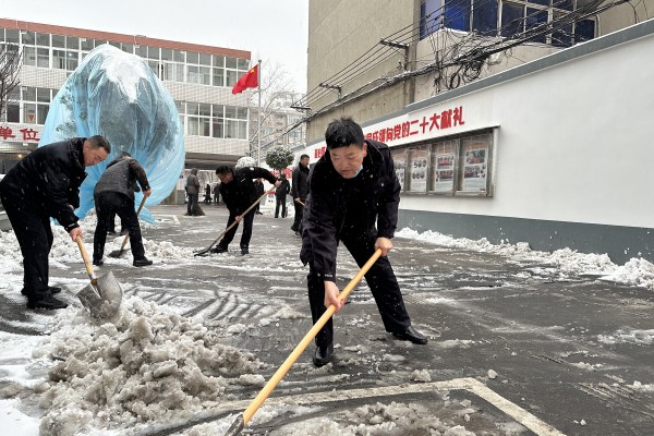 公司黨委書記、董事長(zhǎng)王高峰帶領(lǐng)班子成員率先垂范,公司干部職工積極響應(yīng),有序展開(kāi)清冰掃雪工作。大家不畏嚴(yán)寒,分工明確、團(tuán)結(jié)合作,手持鐵锨、揮動(dòng)掃帚,鏟除積雪、清掃路面,配合默契、干勁十足?,F(xiàn)場(chǎng)“揮舞的鐵鍬”成為了皚皚白雪中暖心的一道風(fēng)景線。由于準(zhǔn)備充分,組織有力,發(fā)動(dòng)及時(shí),經(jīng)過(guò)1個(gè)多小時(shí)的不懈努力,辦公樓院內(nèi)和門前三包積雪基本清理干凈,保障了道路暢通安全,路面恢復(fù)了平日的干凈和整潔。