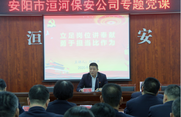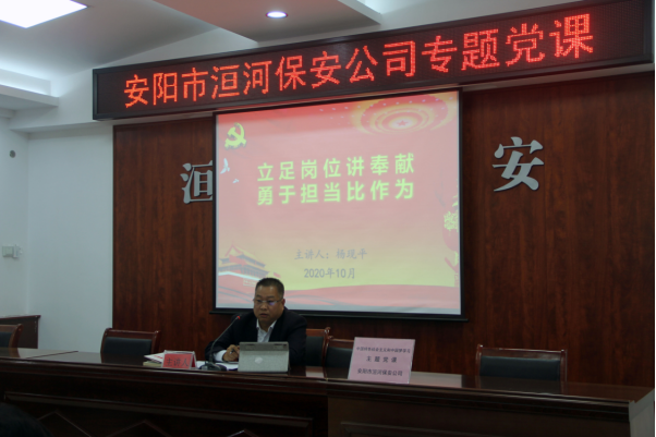 為進(jìn)一步提升黨員干部的黨性修養(yǎng)與政治素質(zhì),激勵(lì)以追求卓越、只爭(zhēng)朝夕的精神,擔(dān)當(dāng)作為、勇于奉獻(xiàn),努力建設(shè)新時(shí)代一流保安隊(duì)伍。2020年10月30日下午4時(shí),在南二樓會(huì)議室,公司黨委組織召開了《立足崗位講奉獻(xiàn)、勇于擔(dān)當(dāng)比作為》專題黨課,黨課由第四黨支部書記楊現(xiàn)平為大家講授。公司黨委書記王高峰,黨委副書記張錫軍,黨委委員高代獻(xiàn)、魏東、楊克忠,總經(jīng)理助理以及各黨支部書記、副書記、入黨積極分子代表40余人聆聽了黨課。黨課由張錫軍同志主持。