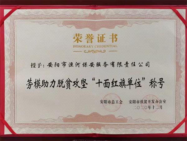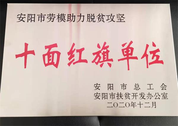 公司榮獲安陽市勞模助力脫貧攻堅(jiān)“十面紅旗單位”榮譽(yù)稱號