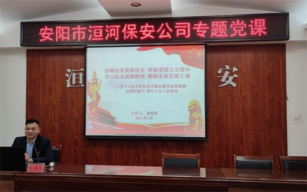 為了弘揚偉大抗美援朝精神,銘記歷史、致敬英雄,引導(dǎo)廣大黨員干部傳承革命精神,牢記初心使命,勇于擔(dān)當(dāng)作為。由于當(dāng)前處于疫情防控期,2021年1月12日下午,在公司南二樓會議室,黨委錄制了專題黨課視頻,黨課以《回顧抗美援朝歷史 厚植愛國主義情懷 學(xué)習(xí)抗美援朝精神 熔鑄企業(yè)發(fā)展之魂》為主題,由第三黨支部書記聶紹軍同志講授,要求各黨支部充分利用微信工作群、學(xué)習(xí)強(qiáng)國云盤等網(wǎng)絡(luò)平臺,通過集中學(xué)習(xí)或自主學(xué)習(xí)形式動員廣大黨員收看,并做好黨課筆記。