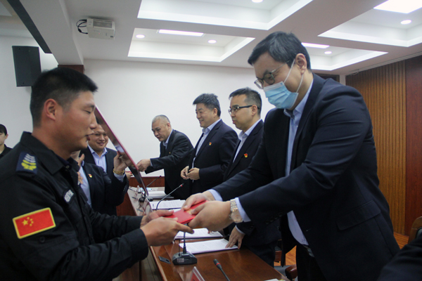 頒獎儀式后,經(jīng)濟責任目標部門負責人向公司黨委書記、董事長、總經(jīng)理王高峰依次遞交2021年經(jīng)濟責任目標書。