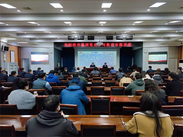 為全面貫徹習(xí)近平總書記在黨史學(xué)習(xí)教育動員大會上的講話精神,加強(qiáng)黨史學(xué)習(xí)教育,增強(qiáng)黨務(wù)工作者的責(zé)任與擔(dān)當(dāng),2021年4月8日上午8點(diǎn)半,安陽經(jīng)開集團(tuán)黨委組織召開黨史學(xué)習(xí)教育專題講座,講座由經(jīng)開集團(tuán)董事長齊方同志主持。公司黨委副書記張錫軍帶隊(duì),各黨支部書記、黨辦工作人員共計14人現(xiàn)場聆聽了講座。