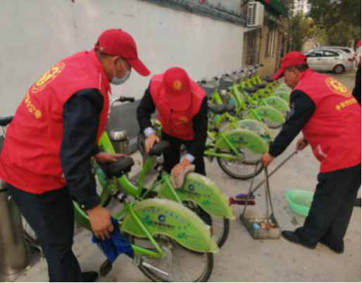 大家手拿抹布,提著水桶,對每部單車進(jìn)行仔細(xì)清潔,不留下一處衛(wèi)生死角。經(jīng)過1個小時的忙碌,現(xiàn)場單車煥然一新、干凈整潔。