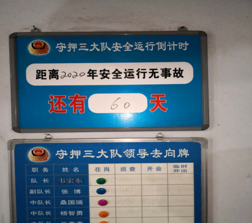 11月2日早7點(diǎn)20分,守押三大隊(duì)全員隊(duì)列整齊,在進(jìn)行例行晨會(huì)。晨會(huì)上,大隊(duì)指著隊(duì)部門口懸掛的大隊(duì)安全運(yùn)行倒計(jì)時(shí)警示牌指出,離全年過去還有不到60天,全體隊(duì)員要保持良好工作作風(fēng),繼續(xù)嚴(yán)守各項(xiàng)規(guī)章制度和守押安全操作指南,繼續(xù)嚴(yán)格遵守防疫措施,為安全順利完成全年大隊(duì)工作目標(biāo)繼續(xù)努力。