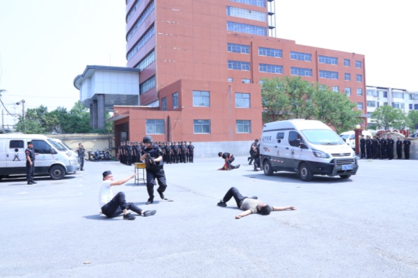此次練兵考核項(xiàng)目主要包括隊(duì)列、交通指揮、文明禮儀崗、理論測(cè)試、守押防搶劫預(yù)案與輪胎更換、人防校園防暴預(yù)案及銀行應(yīng)急預(yù)案、消防知識(shí)問(wèn)答與實(shí)際操作等科目??己诉^(guò)程中,人防分公司全體隊(duì)員精神飽滿、隊(duì)列整齊、紀(jì)律嚴(yán)明;特保大隊(duì)參訓(xùn)率較高、科目完整、士氣振奮;守押分公司各大隊(duì)基礎(chǔ)科目扎實(shí)沉穩(wěn)、精湛成熟、指揮標(biāo)準(zhǔn)、動(dòng)作規(guī)范,尤其是創(chuàng)新科目刺殺操動(dòng)作剛勁、氣勢(shì)雄渾,讓人耳目一新。