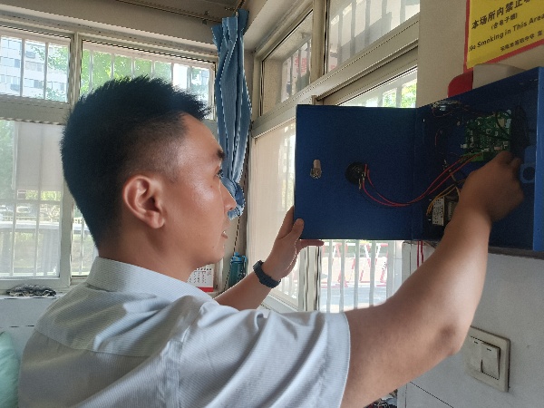 技防分公司副經(jīng)理劉帥帶領(lǐng)專業(yè)技術(shù)人員, 通過外觀檢查、報(bào)警響應(yīng)測試、語音對(duì)講功能、線路與供電檢查等,對(duì)考點(diǎn)學(xué)校一鍵報(bào)警系統(tǒng)進(jìn)行全流程、專業(yè)化檢測。同時(shí)對(duì)安保人員進(jìn)行專項(xiàng)培訓(xùn),強(qiáng)化設(shè)備操作規(guī)范與應(yīng)急處置能力,確保關(guān)鍵時(shí)刻“一鍵即應(yīng)、高效處置”。