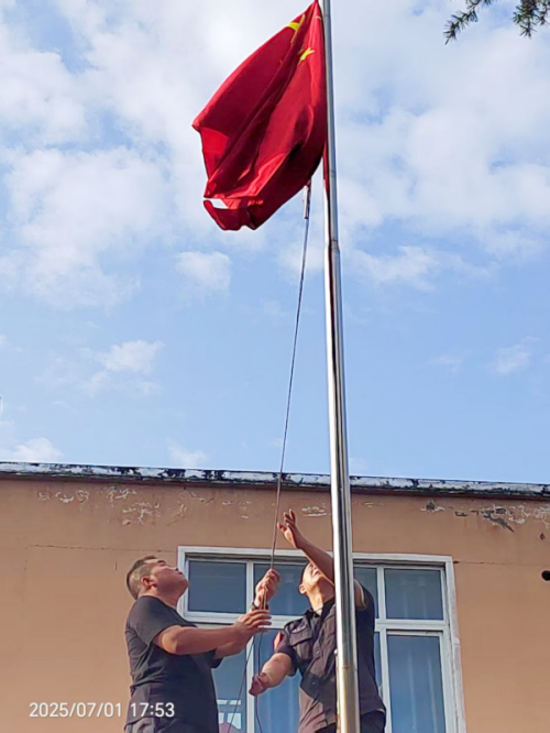 為慶祝中國共產(chǎn)黨成立104周年,傳承紅色基因,賡續(xù)精神血脈,7月1日清晨,守押十大隊水冶中隊與商都農(nóng)商銀行水冶支行在辦公室樓前共同舉行“七一”升國旗儀式,以莊嚴(yán)儀式向黨的生日獻(xiàn)禮。