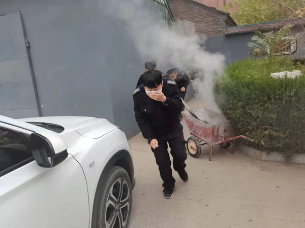 圖為消防演練現(xiàn)場(chǎng)。
