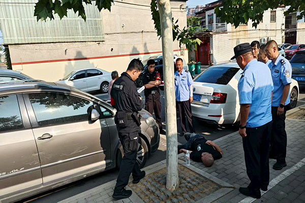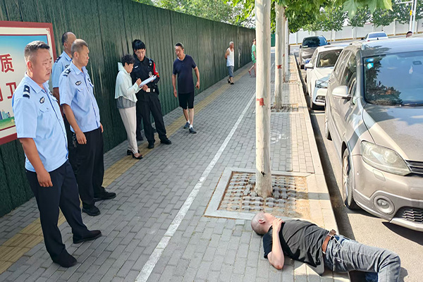 2025年7月13日早上7:40分,人防二大隊(duì)龍安巡防中隊(duì)班長(zhǎng)崔志濤帶領(lǐng)隊(duì)員李海波、武明江、李文政、霍甲甲、馬躍東、王鑫海在轄區(qū)開展日常巡邏。當(dāng)行至鐵四路與祥云街交叉口附近時(shí),發(fā)現(xiàn)一名身穿深色衣物的中年男子平躺在馬路牙子上,周圍無其他人員。經(jīng)初步觀察,該男子處于醉酒酣睡狀態(tài),存在安全隱患。