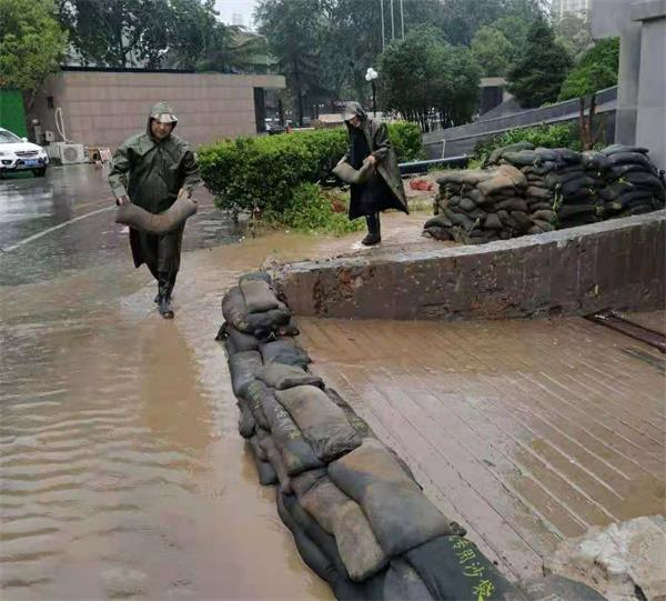 保安隊(duì)員冒著暴雨四處巡查客戶單位各排水口,疏通堵塞的下水道,讓雨水快速流過;利用防汛沙袋及時(shí)建立防汛墻阻止雨水倒灌進(jìn)入地下停車場(chǎng);對(duì)部分滲透入地下車庫(kù)的雨水進(jìn)行及時(shí)清理。很快,隊(duì)員的有效處置措施,阻止了雨水漫入地下車庫(kù),避免了客戶單位財(cái)產(chǎn)損失。
