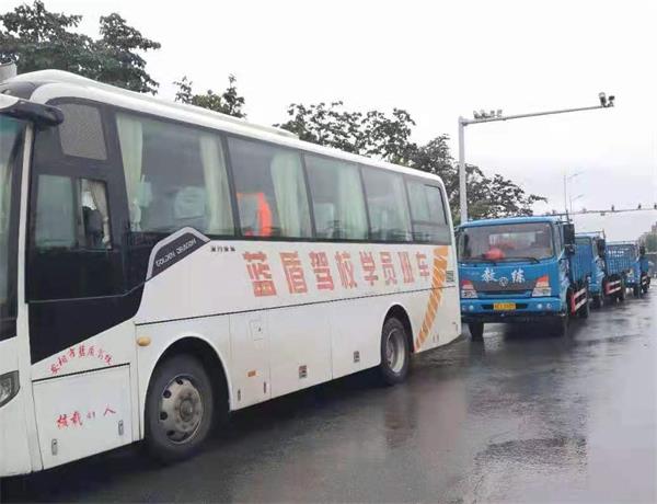 7月21日上午10時,藍盾駕校接到北關區(qū)政府指令后,立即組織學??购閾岆U應急隊30名員工、3輛貨車、1輛大巴車,迅速趕到平原橋南側(cè)集合待命。