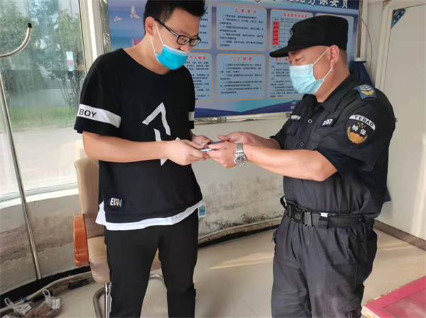 9月9日下午18時許,駐守在中國銀行人防一大隊隊員李勇在ATM自助設備附近執(zhí)勤巡邏時,發(fā)現(xiàn)地上有部九成新手機,他立即聯(lián)系了當班負責人,并在原地等失主。等了半小時未果后,把這部手機交給班長保管。一個小時后失主打來電話尋找手機,得知是銀行保安拾到了非常欣喜。一會兒失主付先生趕到現(xiàn)場,經(jīng)核對無誤后將手機領回,手機失而復得,付先生臉上露出燦爛的微笑,他激動地說:“真的太感謝你們了,手機不值多少錢,但里面有很多照片和電話號碼不能丟啊。他對保安隊員的拾金不昧行為表示感謝!