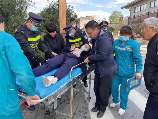 經(jīng)了解,電動(dòng)車車主腿部受傷不能動(dòng),并患有心臟病。隊(duì)員立即幫忙撥打120,同時(shí)幫忙維持現(xiàn)場交通秩序,疏散圍觀群眾,并安撫傷者。直至救護(hù)車到達(dá)現(xiàn)場,協(xié)助醫(yī)護(hù)人員幫忙把受傷者抬到救護(hù)車上,隊(duì)員才回到崗位上繼續(xù)巡邏。