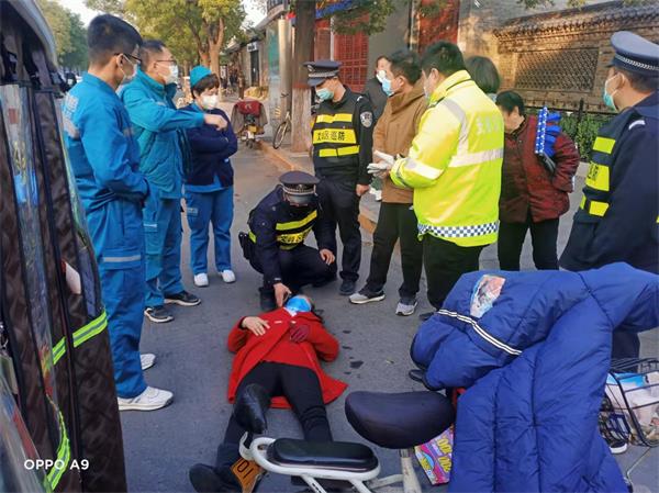 早上7點50分許,巡防隊員王軍清、梁子力,完成學校護校崗安保任務后,在返回單位途中,發(fā)現(xiàn)文峰北路與三道街交叉口車輛行駛極其緩慢,造成道路擁堵。王軍清立即下車查看,原來是一輛轎車與一輛電動車發(fā)生碰撞,導致電動車側翻倒地,一名約70歲的老人摔倒在地,見此情形,執(zhí)勤隊員連忙上前詢問查看,發(fā)現(xiàn)該老人表情痛苦,外觀有輕微傷。