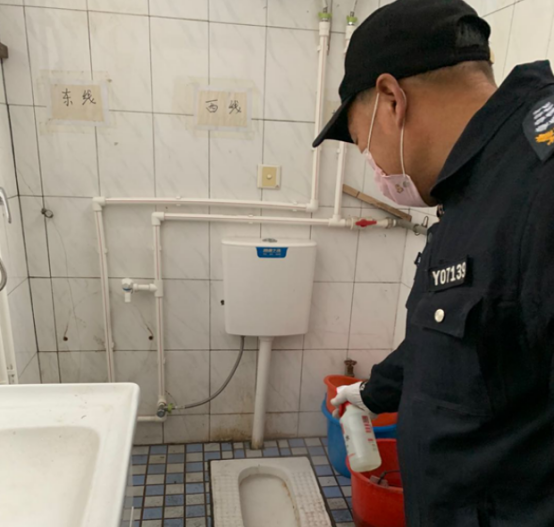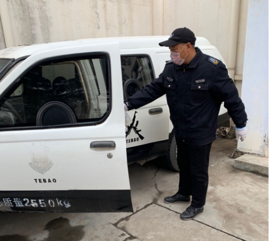 李小強(qiáng),守押七大隊(duì)臨淇中隊(duì)的一名普通的隊(duì)員,擔(dān)任臨淇中隊(duì)中隊(duì)長。疫情爆發(fā)以來,為了隊(duì)友的安全,他主動承擔(dān)了對全體隊(duì)員摸排的任務(wù)。他每天不厭其煩,挨個(gè)打電話,核實(shí)22名隊(duì)員情況,每日將隊(duì)員有無外出;有無發(fā)熱、咳嗽癥狀;有無與武漢來安的親戚朋友接觸等信息匯總后上報(bào)大隊(duì)。在做好這些工作的同時(shí),他還在微信群中發(fā)送防控疫情蔓延的小知識,做好疫情防控的宣傳教育工作。為確保隊(duì)員不感染病毒,他每天提前到單位,在出車前,對運(yùn)鈔車進(jìn)行消毒。隊(duì)員上崗前,他認(rèn)真測量隊(duì)員體溫,檢查隊(duì)員自我防護(hù)情況。收車后,在別人都已經(jīng)下班后,他再次對守庫室、槍庫、槍柜進(jìn)行消毒,確保隊(duì)員疫情期間工作安全。隊(duì)友都親切地稱他是“平安的守護(hù)者?!眻D為李小強(qiáng)同志在疫情期間做消毒工作。