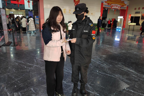 2月2日下午15:20左右,中國(guó)文字博物館內(nèi),一名家長(zhǎng)十分慌張地跑到安檢處,請(qǐng)求特保隊(duì)員協(xié)助尋找孩子,稱11歲的孩子在參觀過程中走失,已自行尋找半小時(shí)未果,特保隊(duì)員了解情況后,通知所有崗位進(jìn)行尋找并啟動(dòng)廣播進(jìn)行告知,通過不懈努力,幫其游客找到走失孩子。