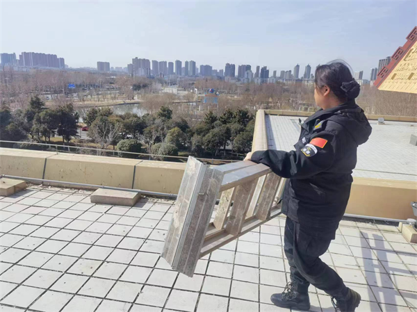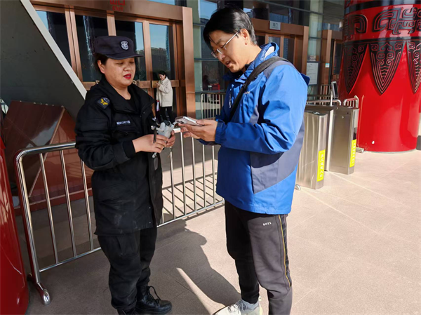 原來事情是這樣的。2月15日午時,趙書娜巡邏時發(fā)現(xiàn)廣場上空有無人機(jī)飛行,便立即尋找無人機(jī)操控人員,當(dāng)巡查到宣文館喂鴿子處時,發(fā)現(xiàn)有一名游客正在操控?zé)o人機(jī),趕忙上前勸阻。這時無人機(jī)剛好電量低掉落在高數(shù)十米的宣文館平臺上,該游客情緒有點波動,請求工作人員將其撿回。趙書娜隨即聯(lián)系中隊長,向館方上報情況后取來備用鑰匙。隨后,趙書娜和中隊長搬著梯子一同到三樓、四樓平臺尋找,終于在四樓平臺找到掉落的無人機(jī)。經(jīng)核實無誤后,聯(lián)系無人機(jī)機(jī)主在安檢進(jìn)行登記認(rèn)領(lǐng),該名游客自稱是從北京前來參觀。