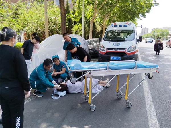 人防一大隊(duì)派駐市教育局門崗保安員馬艷超見狀迅速反應(yīng),趕到現(xiàn)場查看受傷女子情況,并立即撥打120急救電話,同時(shí)運(yùn)用急救知識伙同路人對傷員進(jìn)行簡單急救,并撥打受傷人員家屬電話。直至家屬和醫(yī)護(hù)人員抵達(dá),馬艷超始終守護(hù)現(xiàn)場。
