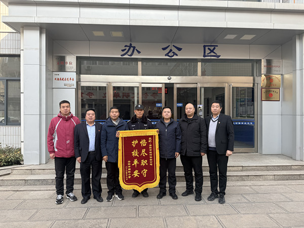 2025年12月24日上午,安陽(yáng)市朝陽(yáng)小學(xué)校長(zhǎng)李獻(xiàn)紅、總務(wù)處主任路天順一行專程到訪公司,代表全校師生贈(zèng)送錦旗,對(duì)人防一大隊(duì)派駐該校的保安隊(duì)員劉河林十幾年如一日的辛勤付出致以誠(chéng)摯謝意。