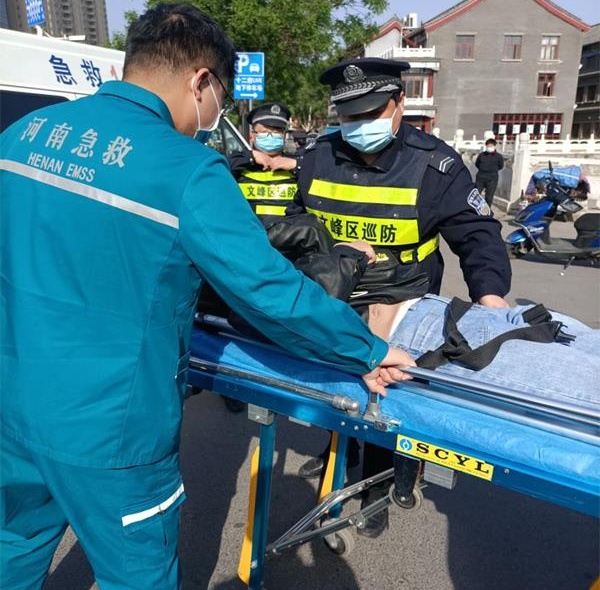 上午8時(shí)40分許,巡防隊(duì)員王一男、李帥、梁子力等11名隊(duì)員巡邏至文峰十二府旁,遇到一起交通事故,導(dǎo)致現(xiàn)場(chǎng)交通堵塞。隊(duì)員們迅速把車(chē)輛有序??吭诼放?,并上前查看情況,只見(jiàn)一女子電動(dòng)車(chē)翻在一旁,人倒在地上呻吟不止。經(jīng)了解得知,騎電動(dòng)車(chē)的李女士為了避讓轉(zhuǎn)彎的汽車(chē)側(cè)翻在地,并摔傷了腰部,隊(duì)員們立即幫助李女士撥打了120和122事故科電話(huà),并聯(lián)系了李女士愛(ài)人。隨后一邊疏散圍觀群眾,一邊指揮車(chē)輛有序通行,確保道路安全暢通。待120與交警到來(lái)后,隊(duì)員們協(xié)助醫(yī)護(hù)人員把傷者李女士抬上救護(hù)車(chē),才離開(kāi)現(xiàn)場(chǎng)繼續(xù)巡邏工作。
