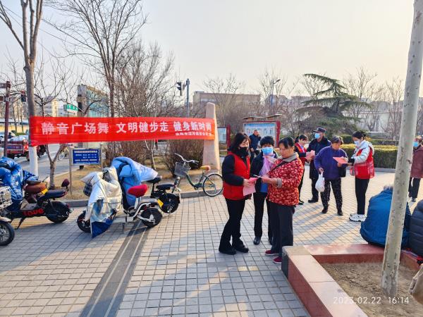 為倡導(dǎo)文明健康的生活方式,引導(dǎo)群眾培養(yǎng)文明行為習(xí)慣,促進(jìn)全民健身運(yùn)動文明、健康、有序發(fā)展,營造良好公共環(huán)境,2月22日下午,公司志愿者們來到平原橋法治文化廣場開展“靜音廣場舞 文明健步走 健身新時(shí)尚”宣傳志愿服務(wù)活動。