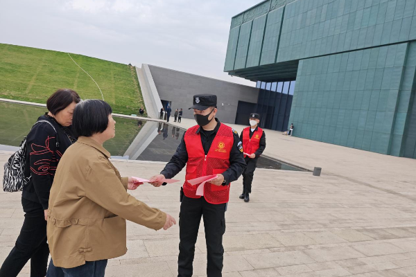 活動中,志愿者們身穿紅色馬甲,在景區(qū)入口處向來自各地的旅客熱情地介紹文字博物館的基本情況,為游客提供旅游咨詢、路線引導(dǎo)和便民服務(wù)。同時向過往群眾發(fā)放《文明出游倡議書》宣傳頁,積極宣傳文明旅游相關(guān)知識,號召大家在出游時,要樹立文明出游意識,注意自己的行為舉止,遵守文明行為規(guī)范,愛護(hù)公共設(shè)施,共同維護(hù)環(huán)境衛(wèi)生,不踩踏草坪、不亂扔垃圾。