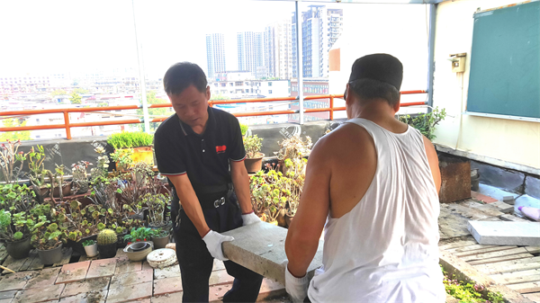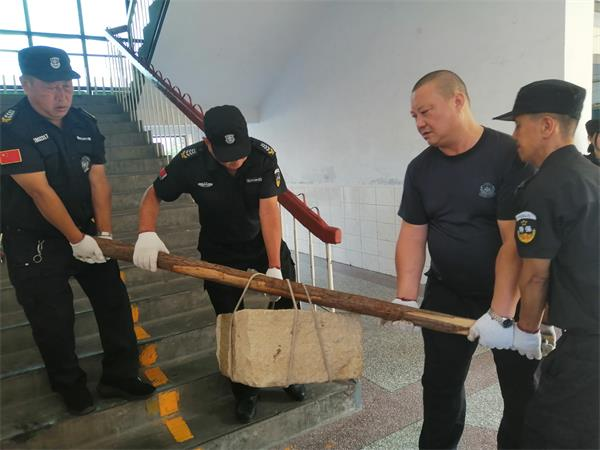 由于該校教學(xué)樓上遺留有一定數(shù)量的花池、石塊、石槽、建筑塊、水泥塊、地板、磚等物,校方排查存在安全隱患,需要把樓頂?shù)臇|西清運(yùn)下來。按照支部組織謀劃安排,當(dāng)日上午8點(diǎn)半,在黨員、中隊(duì)長(zhǎng)劉宇,預(yù)備黨員、副中隊(duì)長(zhǎng)楊承濤帶領(lǐng)下,同志們齊心協(xié)力、相互配合,采取接力方式向下轉(zhuǎn)運(yùn)。有的一塊石頭有二三百斤,他們就用繩子捆住向下抬,一個(gè)個(gè)累得汗流浹背,但沒有一個(gè)人叫苦叫累,張運(yùn)洲邊干邊反復(fù)提醒大家注意安全。他們利用一上午時(shí)間,把大部分體積較大的石塊、石板、地磚等物安全清理下樓,又把清運(yùn)堆積在樓道的東西,搬運(yùn)到200米外的樓后隱蔽處。