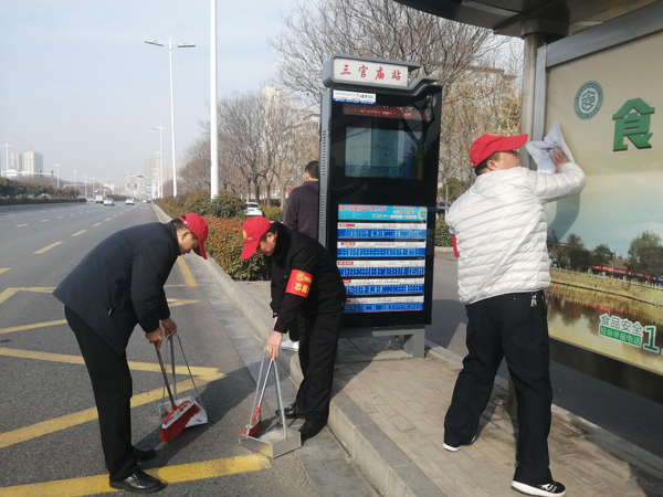 3月5日上午,第五黨支部志愿者帶著掃帚和抹布等工具,來(lái)到人民大道三官?gòu)R公交車站臺(tái)清除垃圾,清理衛(wèi)生死角。活動(dòng)中,大家協(xié)作配合,發(fā)揚(yáng)不怕苦、不怕臟的精神,對(duì)公交站臺(tái)、人行道及路邊綠化帶內(nèi)的落葉、雜草、垃圾等進(jìn)行了全面清理打掃。經(jīng)過大家的辛勤勞動(dòng),公交站點(diǎn)兩旁的衛(wèi)生干凈整潔、煥然一新。